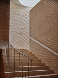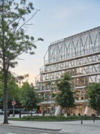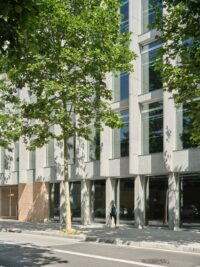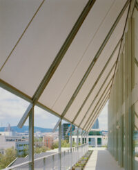 The building is located in a corner of the Eixample and the building is set back to create a small public square. The stepped section allows for a more direct connection to this plaza and allows for a vegetated terrace on each level. The supporting concrete structure follows the silhouette of this section, building two large Lambda-shaped pillars that support the entire building. The building is firmly committed to a thermodynamic behavior that guarantees the minimum use of energy, based on solar protection, ventilation through automated upper gates and the thermal inertia of the concrete.